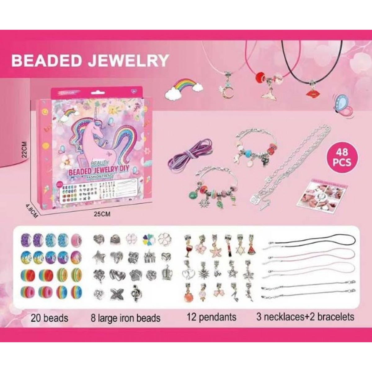 Очаровательный набор украшений приготовил не только красивые аксессуары для малышей, но и креативное творчество, для которого уже есть все необходимые элементы, а именно: создание браслетов и подвесок, которые помогут подчеркнуть индивидуальность.